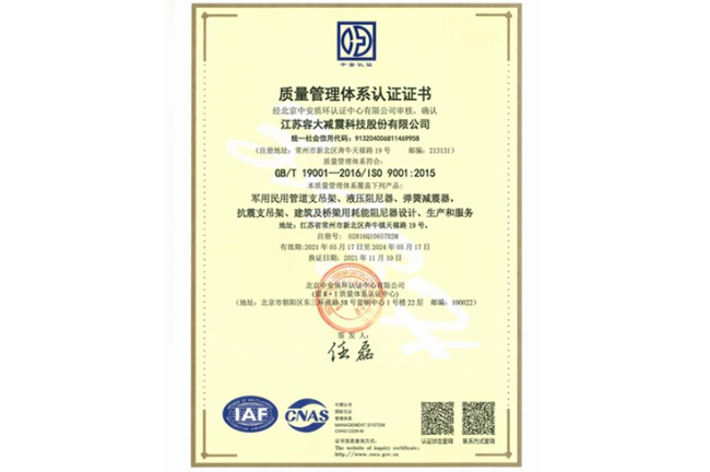 質(zhì)量管理體系證書