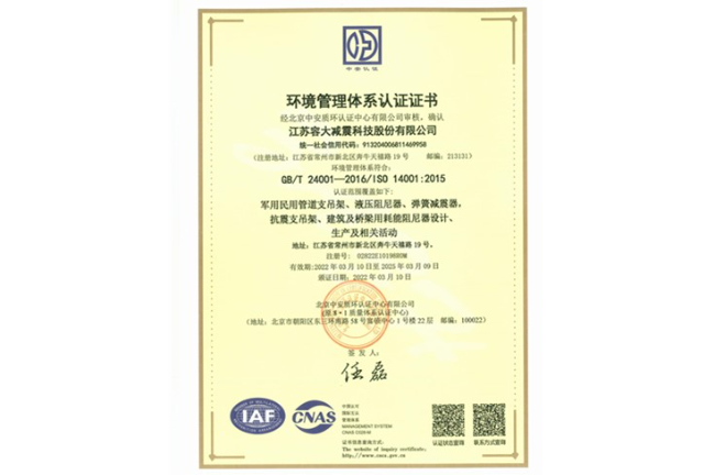 環(huán)境管理體系認(rèn)證證書