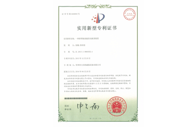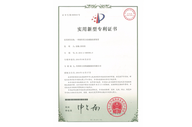 一種粘滯阻尼器證書(發(fā)明授權(quán))